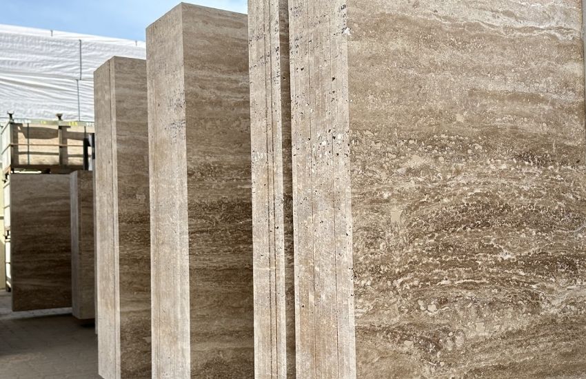 Cream travertine slabs are commonly selected for wall cladding, feature walls, and custom architectural elements. Each slab displays natural veining and subtle surface movement, offering an authentic stone finish formed through natural processes.